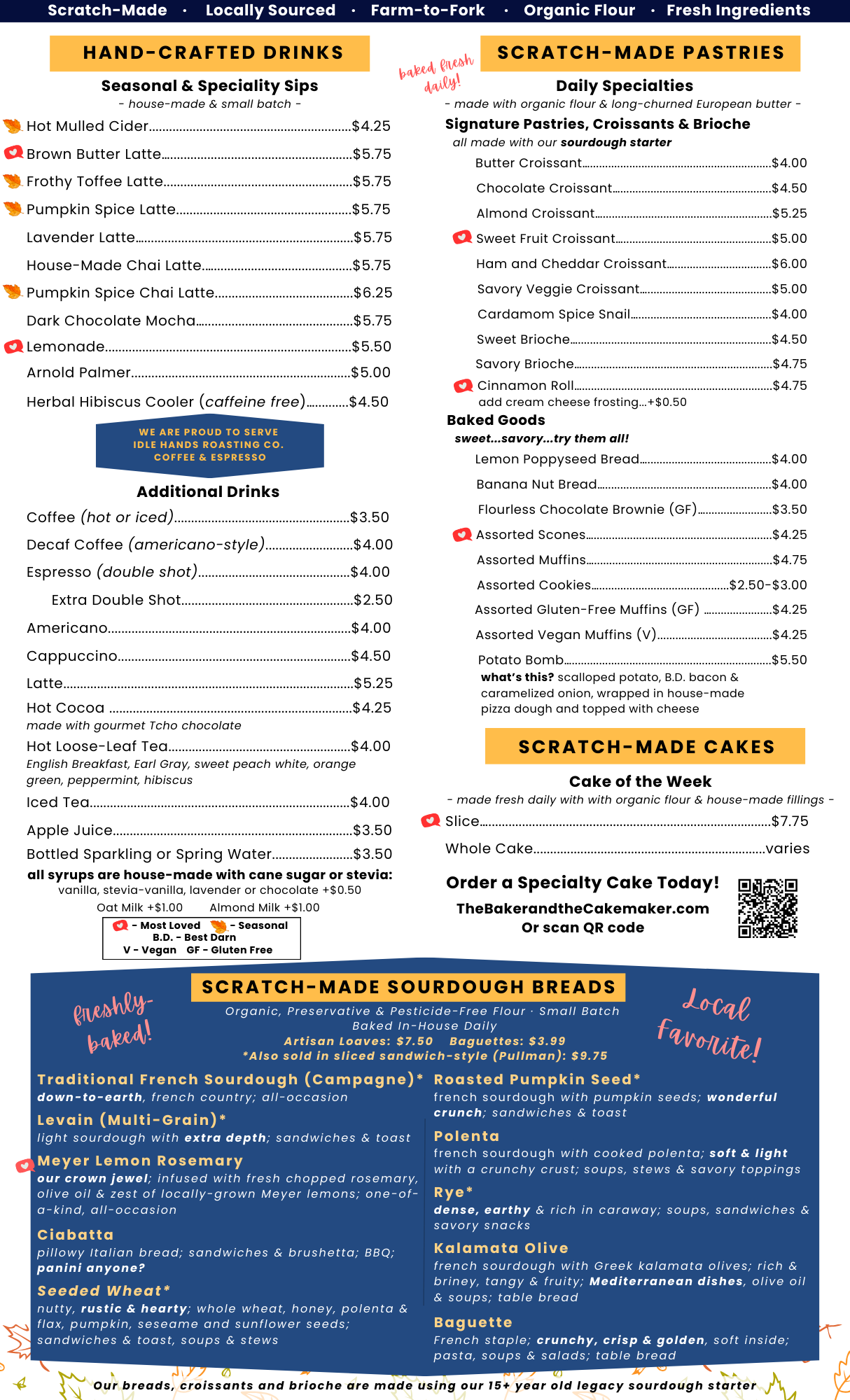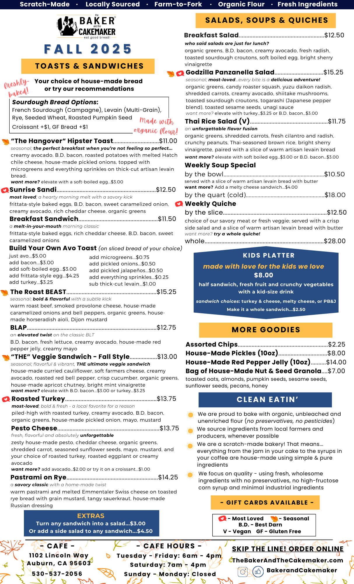 Café & Bakery Menu - Our seasonal selections - Fall 2025 Menu Order Online Order Online Menu updated: September 23, 2025