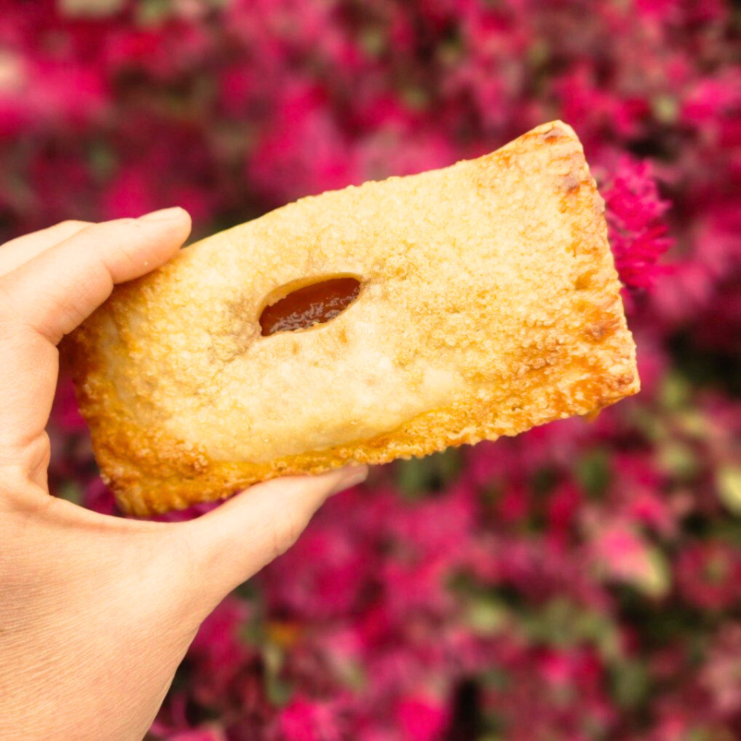 Holiday Special Orders › Peach Blueberry Hand Pie Image 1 of 1 Peach Blueberry Hand Pie $7.50 Flaky, golden hand pie filled with peaches, blueberries, and sweet cream cheese filling. Add To Cart Added! Flaky, golden hand pie filled with peaches, blueberries, and sweet cream cheese filling.